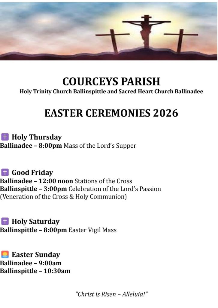 30th Mar 2026Uncategorizedcourceysparishofficegmailcom Share this: Share on X (Opens in new window) X Share on Facebook (Opens in new window) Facebook Like Loading... Related